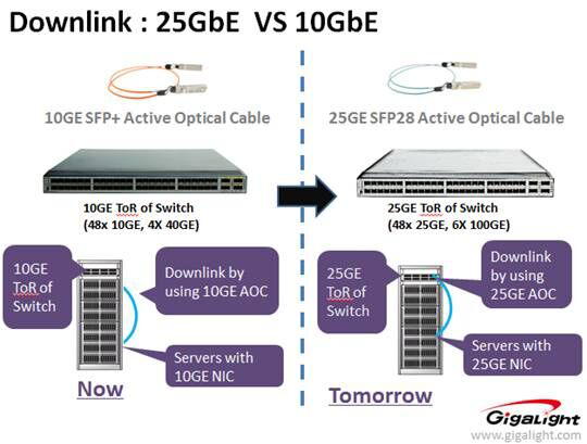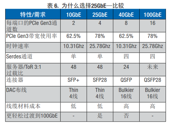 和40ge相比较,25ge以太网服务器到25ge tor交换机连接,25ge它能在机架内支持更高的服务器密度。