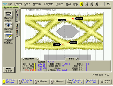 随着易飞扬(gigalight)在多模并行研发取得有效的突破和研究积累,我们积极探索开发更长距离传输的模块产品。要实现长距离传输必须使用色散损耗小的单模光纤,但单模光纤与半导体要实现高的耦合效率,都要对半导体激光器发出的光场进行整形,使入射光场与光纤本征光场达到最大可能的匹配。我们可以采用光学透镜耦合(即在激光器和光纤间加入透镜,图5)和光纤直接耦合(即光纤和激光器光源直接耦合,图6)两种方式。但光学透镜耦合方式,由于耦合系统中各光学元件是分离的,对半导体激光器,透镜,光纤三者间的共轴准直要求非常高。为保证共轴准直要求,经常需要制作表面形状特殊,而且需要透镜的阵列,这使得成本较高,并且产品空间要求较大,不利于微小化封装。我们根据在并行多模光模块产品上的工艺技术积累,采用光纤直接耦合方式实现了并行单模产品开发制作。在这个过程中,我们经历了平端光纤耦合方式和锥形光纤耦合方式。平端光纤耦合制作工艺简单,容易实现,但是由于光源的发光面积和单模光纤芯径面积以及光源发散角和光纤数值匹配关系严重失配,导致耦合效率较低,光反射大容易造成光眼图散点而影响传输质量。因此,我们采用了一种采用光纤熔接接电弧放电而得到的球端面光纤(图7)进行耦合。采用球端面进行耦合,不仅有利于提高光纤耦合效率,同时有利于反射光被改变反射路径,有利于模块光路的调试。图8和图9为平端光纤耦合和球端面光纤耦合的光眼图对比。